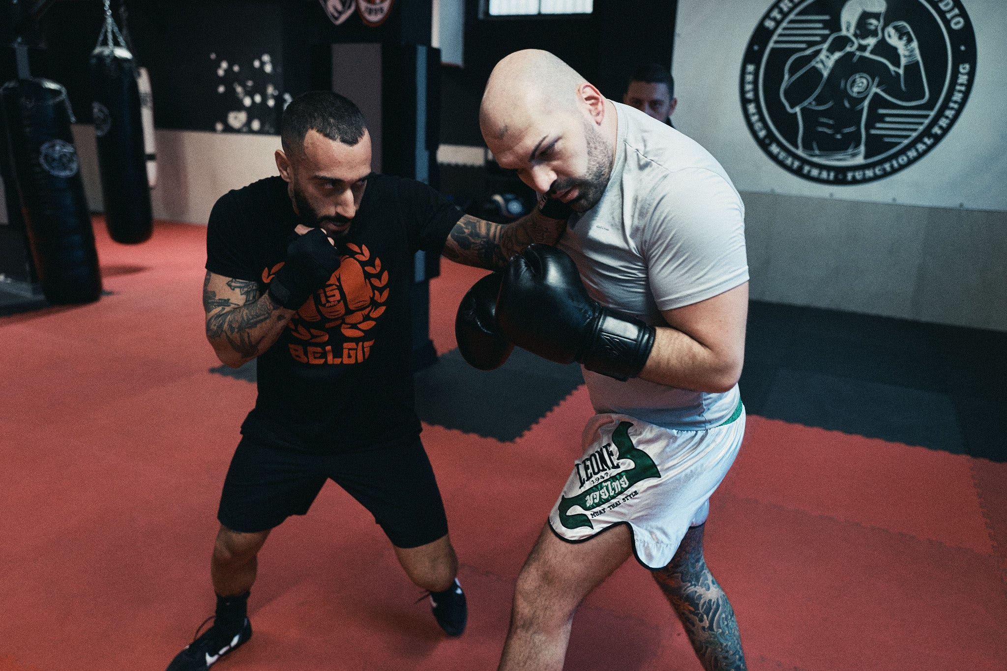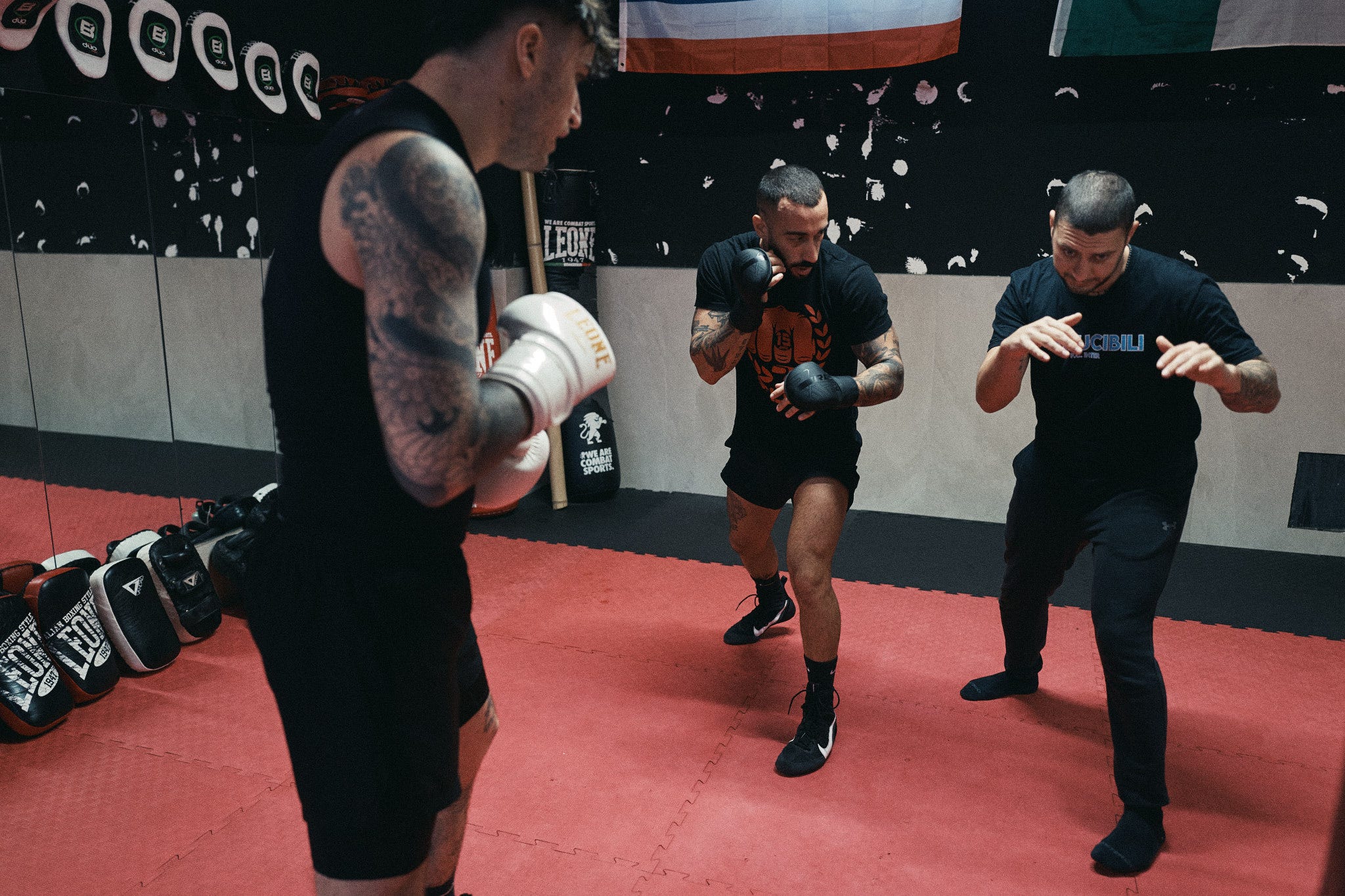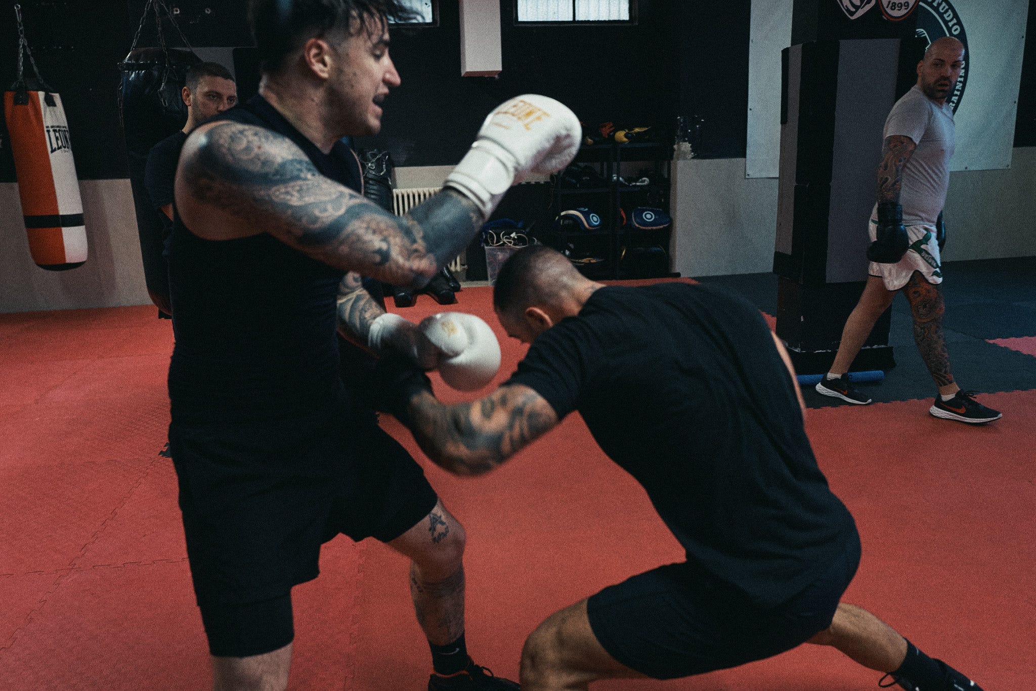 Around them there’s a group. The guys from the gym who step onto the mat with Nicholas every day, offering their bodies for sparring, absorbing punches and giving them back. They’re not opponents they’re part of the process. Christian directs them, corrects them, positions them. Every session is a collective machine set in motion for one single purpose: to arrive at that fight in the best shape possible.